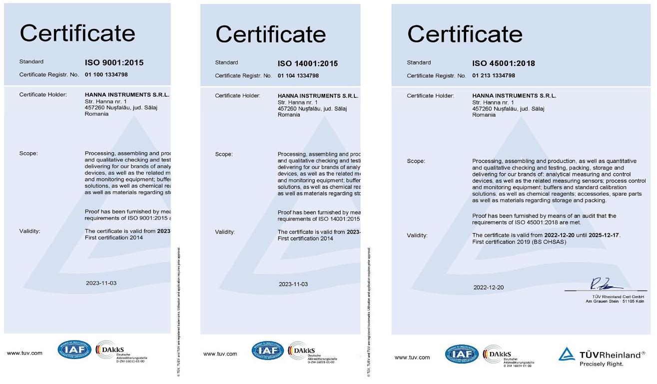 Hanna Instruments reste engagé envers l'excellence et l'amélioration continue. Les installations de fabrication certifiées ISO de l'entreprise garantissent la fiabilité et la précision de ses instruments.